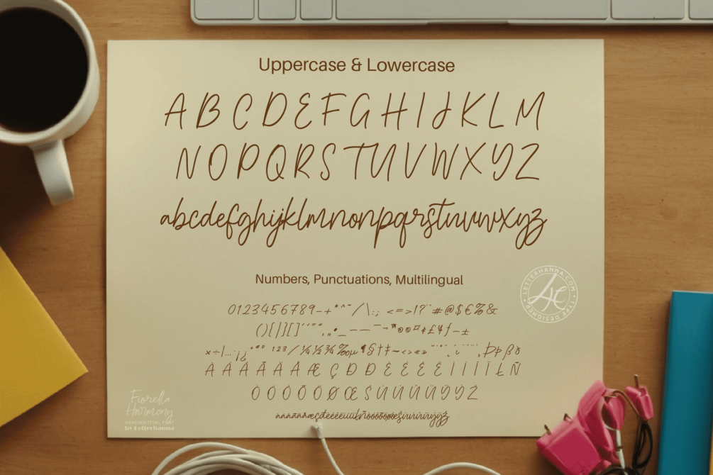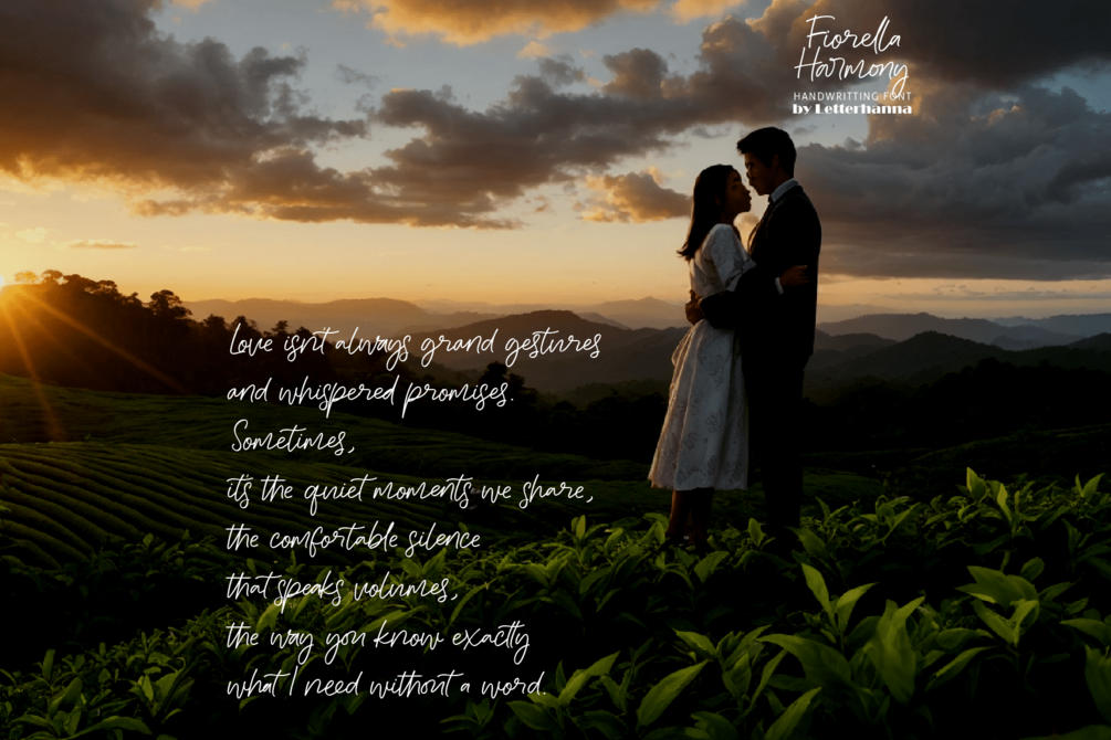 Indulge your creativity with Fiorella Harmony, a brand new handwritten script font designed to bring a touch of elegance and sophistication to your projects. Fiorella Harmony's effortless flow and delicate curves make it perfect for adding a personal touch to wedding invitations, branding materials, and any design where a touch of handwritten charm is desired.