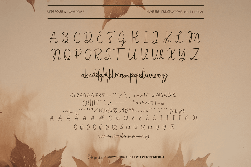 Unleash your inner storyteller with Bellofandia, a captivating new handwriting script font. Inspired by the elegance of calligraphy and infused with a touch of whimsical charm, Bellofandia dances across your designs with effortless grace.