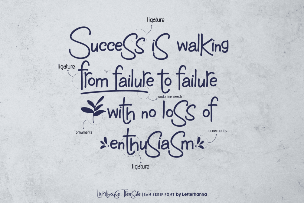 Lighthouse Treasure Font was created to look as close to a natural handwritten as possible by including over 36 natural-looking opentype ligatures. There are also underline swashes included and lot more ornaments, arrow, scribbles, etc.