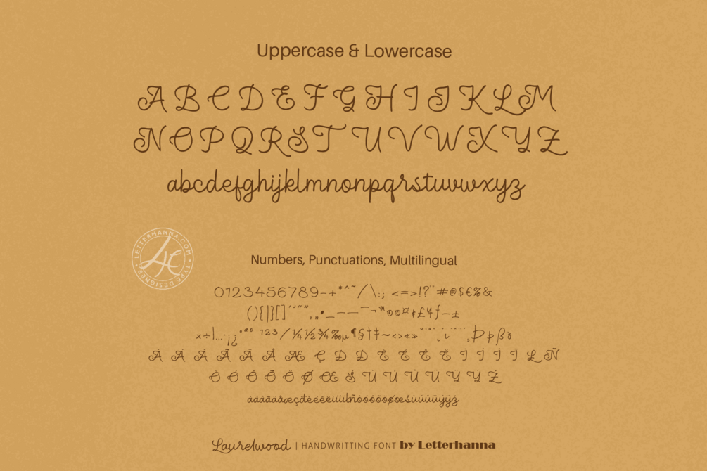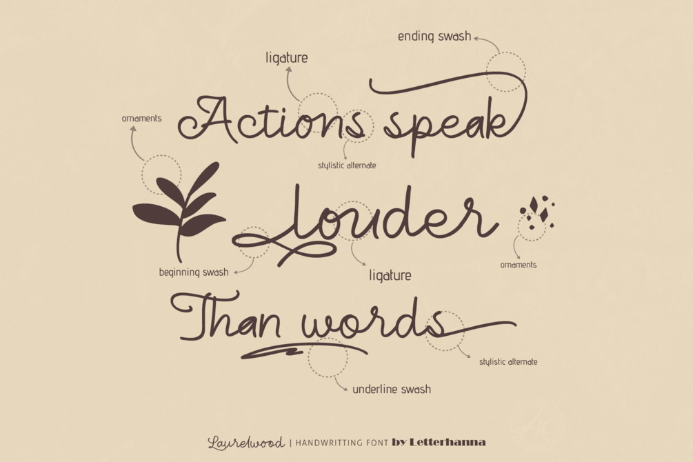 This versatile font is perfect for crafting a touch of distinction in your design projects. Whether you're creating logos, branding materials, or elegant invitations, Laurelwood adds a touch of natural refinement that will leave a lasting impression.