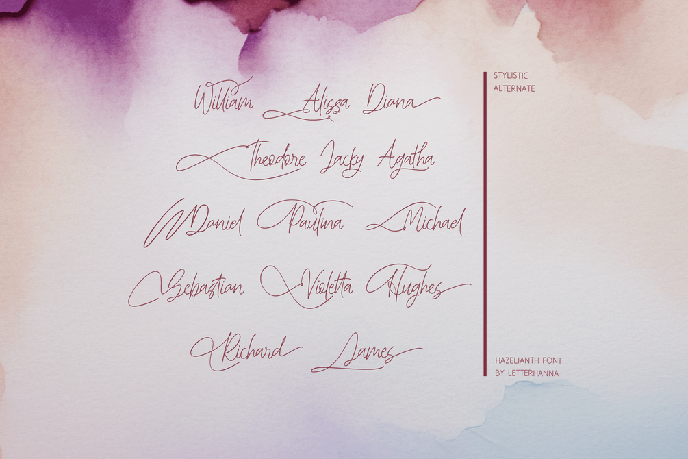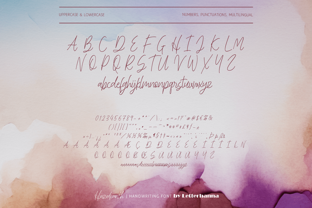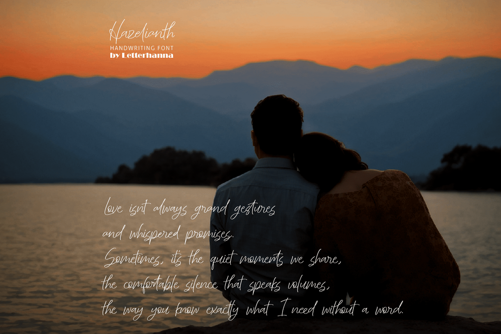 Introducing Hazelianth, a captivating new handwritten script font that dances between elegance and warmth. Each letter flows effortlessly, imbued with a touch of delicate reminiscent of hazelnuts. Imagine the soft whispers of a love letter penned in this enchanting script, or the whimsical flourishes that bring a personal touch to invitations and announcements.