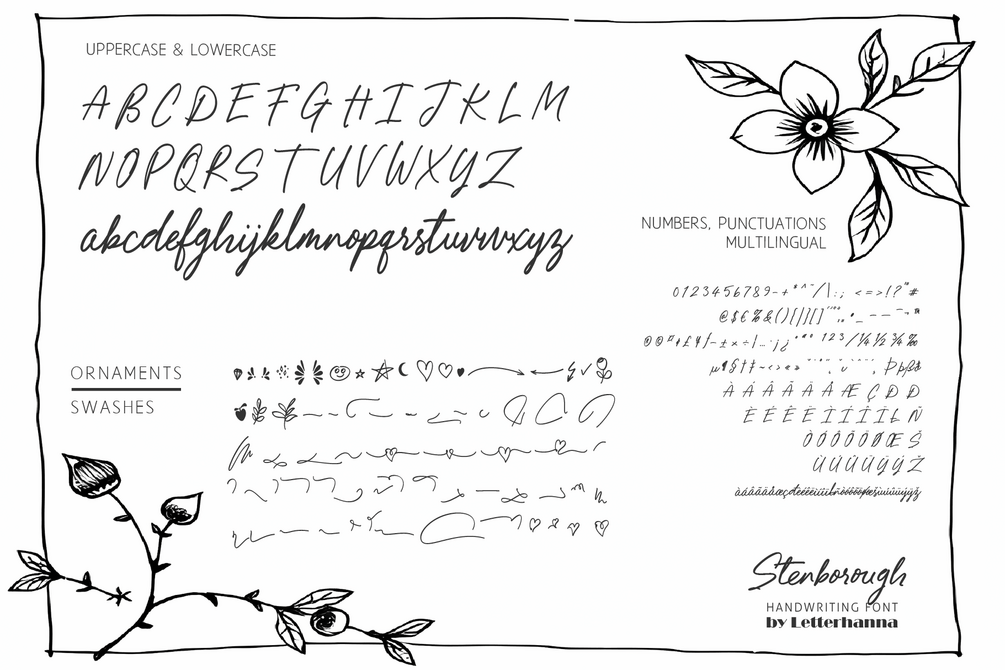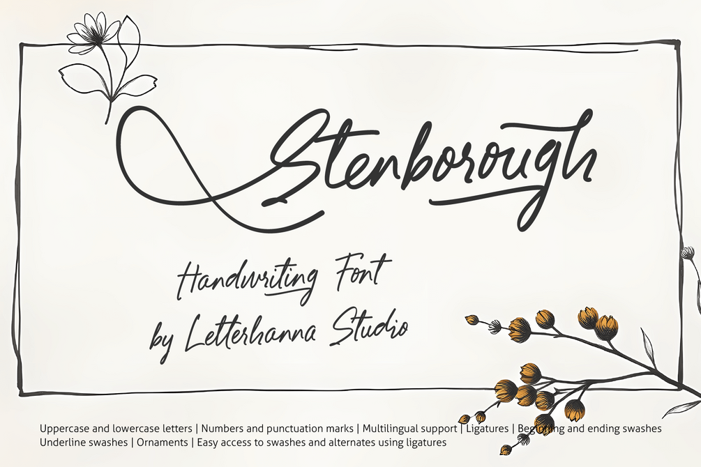 Meet Stenborough, a sophisticated handwriting script font that exudes charm and artistry. Designed for those who appreciate the beauty of calligraphy, Stenborough offers a natural yet refined flow, making it perfect for branding, invitations, packaging, and editorial design.