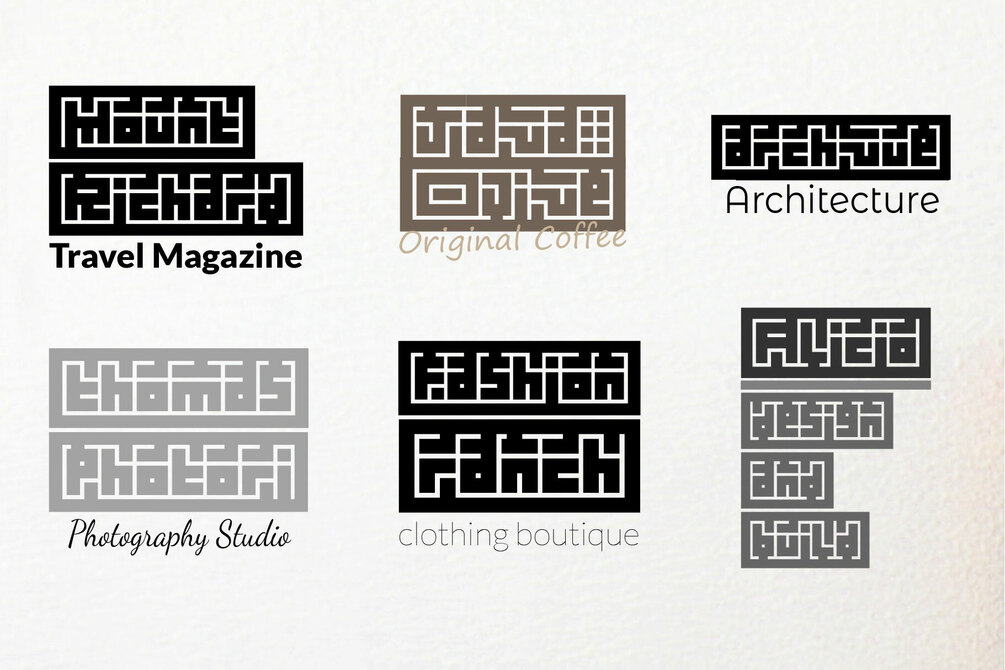 Kuficology Root is a font inspired by Arabic square calligraphy. It's great as logos for business and personal identity. Unique design for your business in a few seconds.