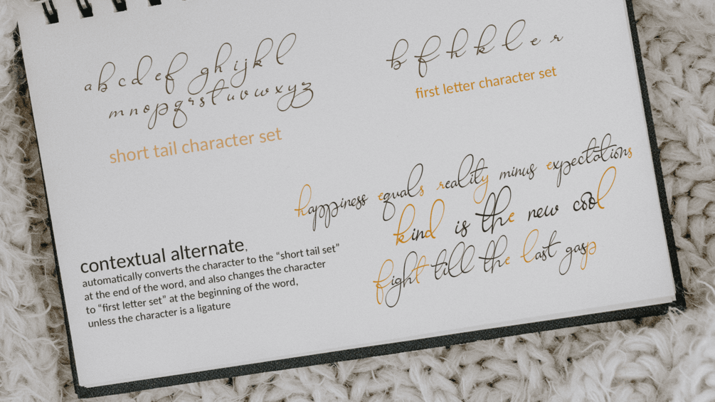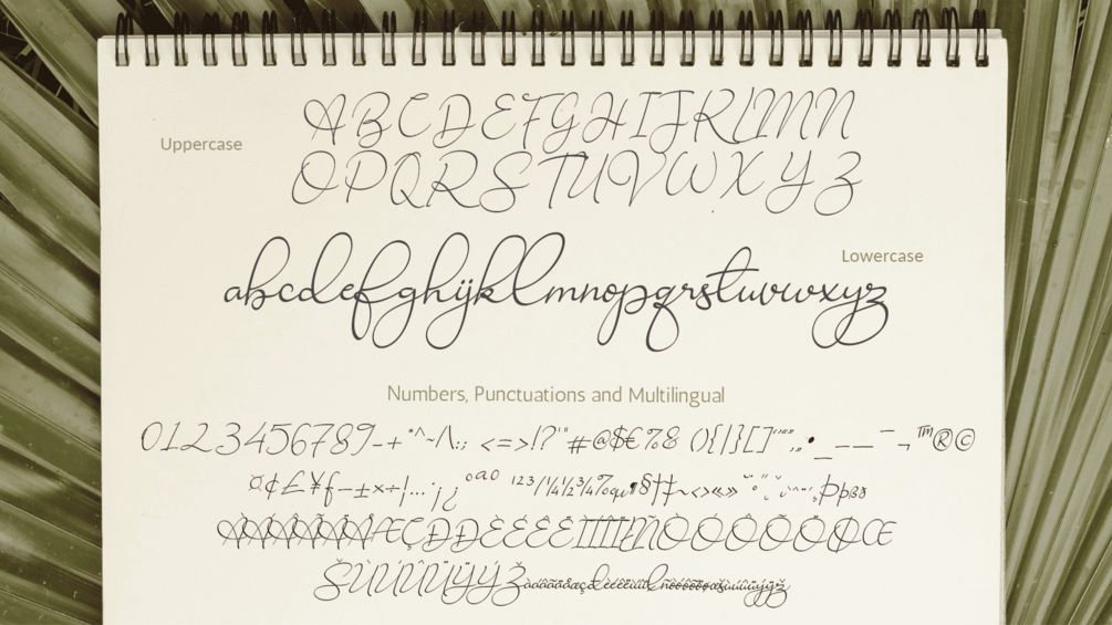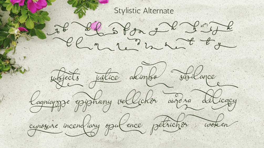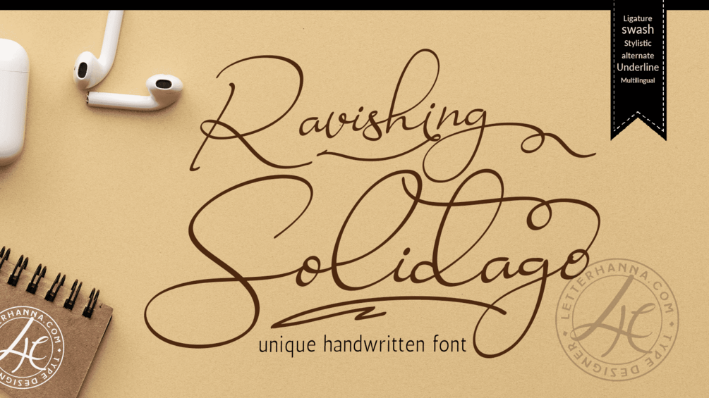 Introducing Ravishing Solidago Font, An authentic & organic hand-drawn script font. This font has been carefully designed to re-create natural handwritten text, and includes 55 custom ligatures to achieve those free flowing pen strokes. Ravishing Solidago Font is perfect for many different project such as logos & branding, invitation, wedding designs, social media posts, advertisements, product packaging, product designs, label, photography, watermark, special events or anything.