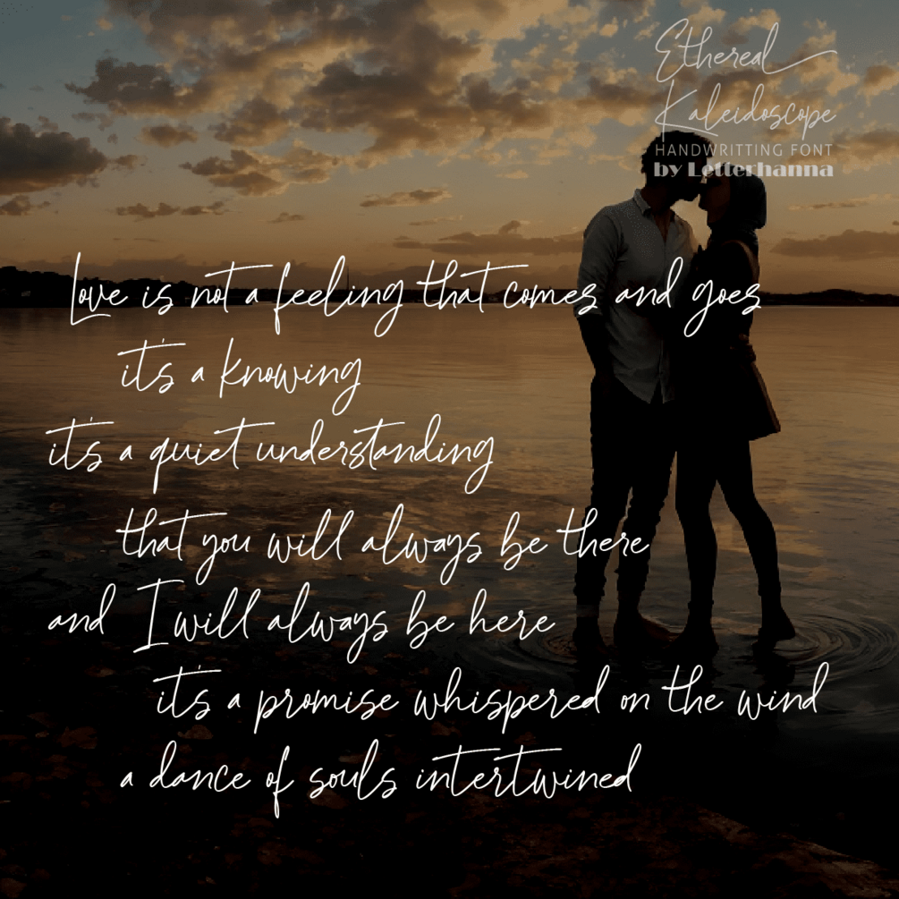 Introducing Ethereal Kaleidoscope, a new typeface that captures the essence of fleeting beauty and mesmerizing transformation. Inspired by the ever-shifting patterns of a kaleidoscope, this font boasts an enchanting flow and delicate details, perfect for projects that demand a touch of the otherworldly.